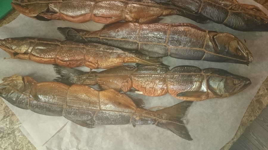 Горбуша горячего копчения, потрошеная, с головой
